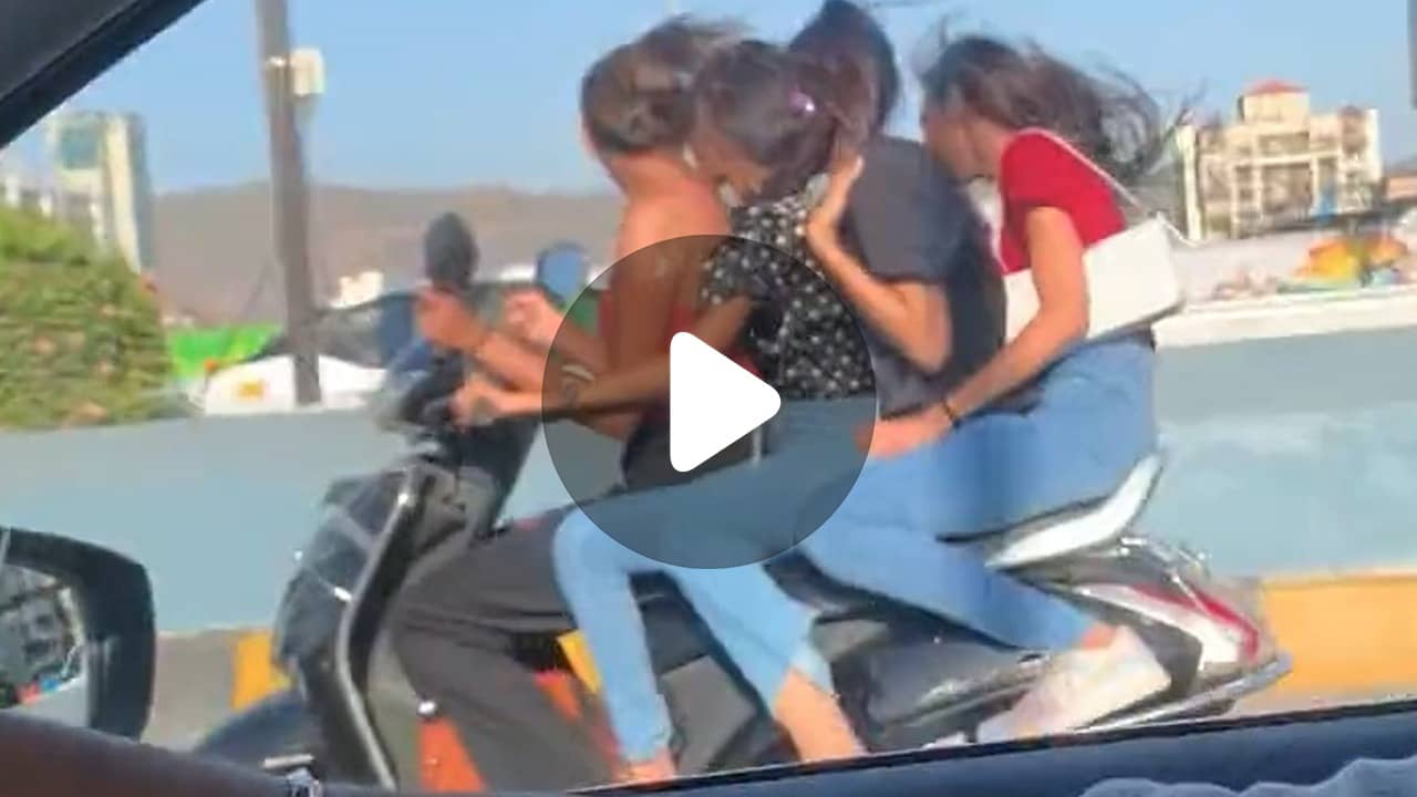 এবার একটা স্কুটারে দেখা গেল চারটি মেয়েকে বসে থাকতে। তাঁদের কারও মাথায় হেলমেট নেই, সেই ভিডিয়োই এখন খুব ভাইরাল হয়েছে। ভিডিয়োটি তোলা হয়েছে একটি গাড়ি থেকে।