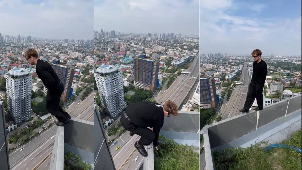 ভিডিয়োতে দেখা যাচ্ছে, একজন ব্যক্তি একটি বহুতল বিল্ডিংয়ের ছাদ থেকে অন্য ছাদে ঝাঁ দিচ্ছে। আর সেই বিল্ডিংয়ের ছাদ থেকে নীচের দৃশ্যটি এতই ভয়ঙ্কর যে এটি দেখলে যে কেউ ভয় পেয়ে যাবে। অর্থাৎ এখান থেকে কেউ পড়ে গেলে তার বাঁচার প্রশ্নই আসে না। কিন্তু এখানে লোকটি নির্ভয়ে রেলিংয়ের উপর দাঁড়িয়ে অন্য দিকে ঝাঁপ দেয়। ভিডিয়োয় দেখতে পাবেন, যুবকটি আবার কয়েক সেকেন্ডের জন্য ঝুলেও থাকেন। তারপরে আবার উপরে চলে আসেন।