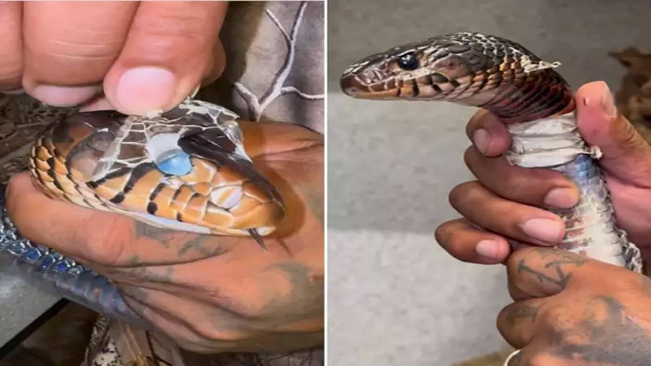 ‘দ্য রিয়েল টারজান’ হ্যান্ডেল দিয়ে ইনস্টাগ্রামে শেয়ার করা হয়েছে এই অবাক করা ভিডিয়োটি। প্রায় 30 সেকেন্ডের এই ক্লিপটিতে একজন ব্যক্তি একটি কালো এবং বাদামী সাপকে এক হাতে ধরে আছেন। অন্য হাত দিয়ে তিনি তার খোলস খুলে নিতে শুরু করেন। তিনি সাপের চোখ থেকেও সেই খোলস সরান। এই সময় আপনি সাপটিকে তার জিভ বের করে এবং হিসশিস করতে দেখতে পাবেন। তারপরে ধীরে ধীরে সেই সাপ হাতের মধ্যেই লম্বা হয়ে যায়, আর তার খোলস নিজে থেকেই ছাড়তে থাকে। এর পর লোকটি সাপের মাথায় চুমু খায়।