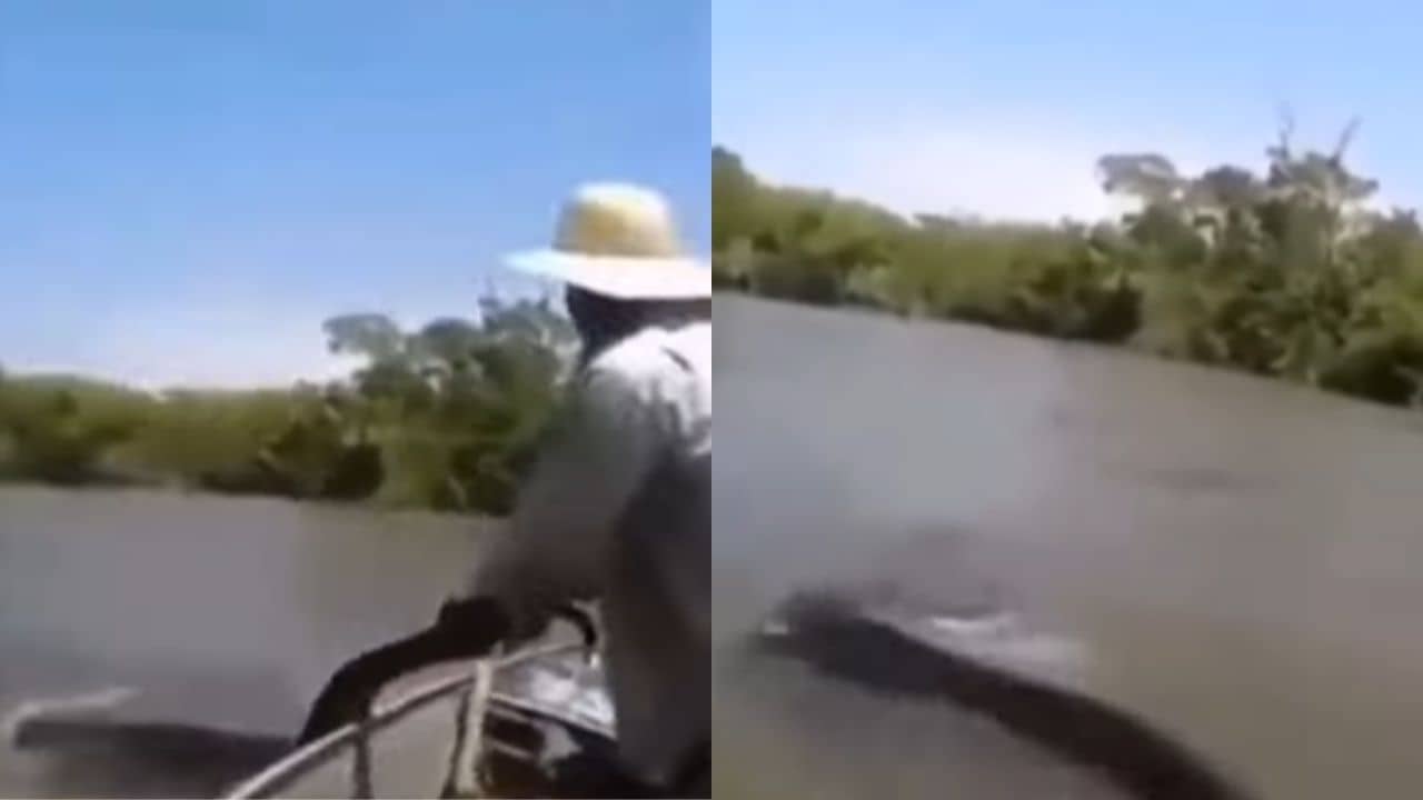 ভিডিয়োটি দেখে মনে হচ্ছে কোনও গভীর অভয়ারণ্যের নদী বা কোনও ম্যানগ্রোভ অরণ্যের মধ্যকার ঘটনা। ওই ভিডিয়োতে দেখা যাচ্ছে যে একজন ব্যক্তি একটি বড় সাপের লেজ ধরে টানছেন। সাপটিও জলের মধ্যে আচার-কাচার দিচ্ছে। তার পর কোনও রকমে সে পালিয়ে যায়।