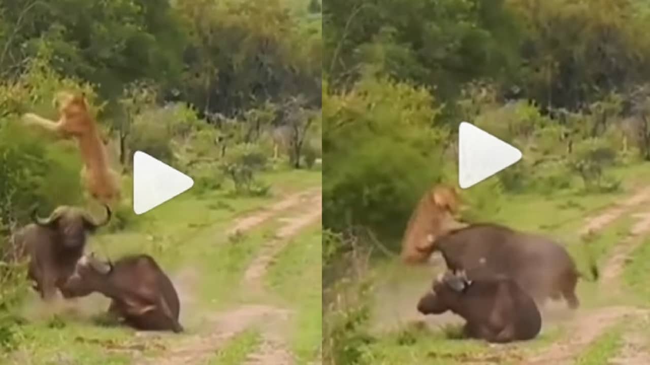 সোশ্যাল মিডিয়ায় রোজ কত ভিডিয়োই তো ভাইরাল (Viral Video) হয়। তার মধ্যে কোনও ভিডিয়ো মজাদার, কোনও ভিডিয়ো একটু দুঃখের, কোনও ভিডিয়ো আবার একটু উদ্ভটই বটে। তবে ওয়াইল্ড লাইফের ভিডিয়ো সব সময়ই মন কেড়ে নেয় নেটপাড়ার লোকজনের। এবার এমনই একটি ভিডিয়ো দেখা গেল, যেখানে একটু উল্টো কাণ্ড দেখা গেল। একটি মোষকে (Buffalo) আক্রমণ করে এক সিংহী (Lioness)। উল্টো দিক থেকে আর এক মোষ এসে সেই সিংহীকে তুলে আছাড় মেরে দেয়।