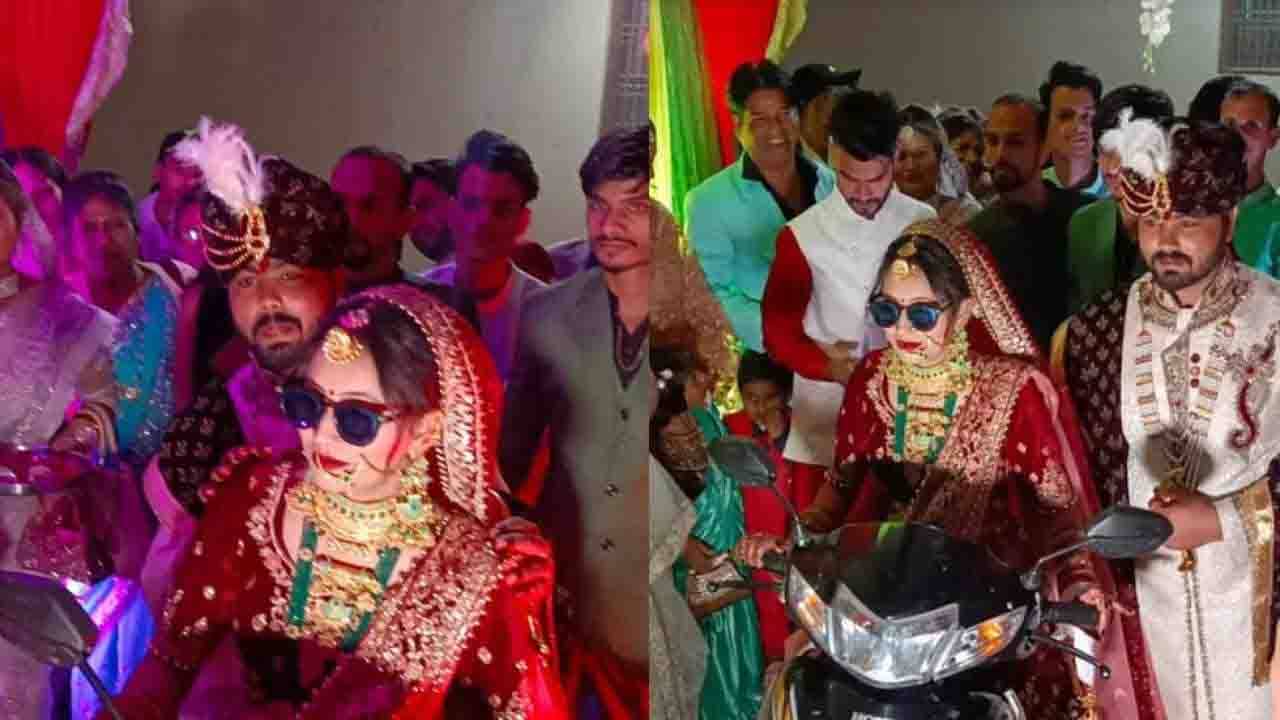 সবার চোখ তাঁর ওপরই ছিল, যখন কনে চোখে কালো সানগ্লাস পড়ে গ্র্যান্ড এন্ট্রি নেন বিয়ের আসরে। চমক যদিও এখানেই শেষ নয়। বিয়ের আসরে তিনি প্রবেশ করেন স্কুটি চালিয়ে। তাঁর স্কুটির পিছনে কে বসেছিলেন জানেন? স্বয়ং বর। বরকে তিনি রাজি করান তাঁর পিছনে বসার জন্য। আর এভাবেই তিনি মঞ্চে প্রবেশ করেন।