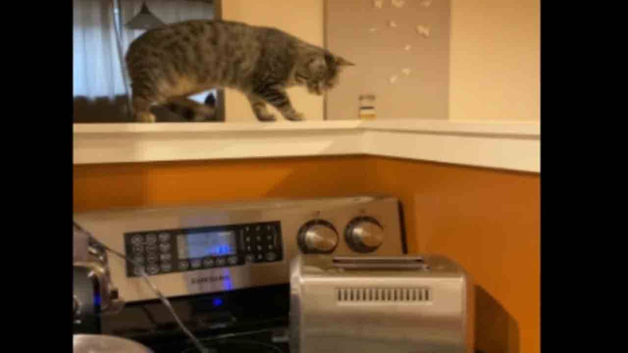 সুসজ্জিত রান্নাঘর দেখেই বোঝা যাচ্ছে যে সেখানে রান্না করার যাবতীয় মেশিন বেশ আধুনিক। বেশ সুন্দর করে পার্টিশন দিয়ে সাজানোও হয়েছে রান্নাঘরে। রাখা হয়েছে স্টিল রঙের একটি অটোম্যাটিক আধুনিক টোস্টার। পাঁউরুটি সেঁকা হলে যন্ত্রই মানুষকে জানান দেবে যে কাজ হয়ে গিয়েছে। কিন্তু এই টোস্টার যে চালু রয়েছে তা বোধহয় বুঝতে পারেনি ওই বিড়ালটি। তাই রেলিংয়ের উপর ‘ক্যাট ওয়াক’ করার সময় একটু মনযোগ দিয়ে খুঁটিয়ে দেখতে গিয়েছিল যে ওই যন্ত্র আসলে কী। তার ফলেই ঘটেছে এই কাণ্ড।