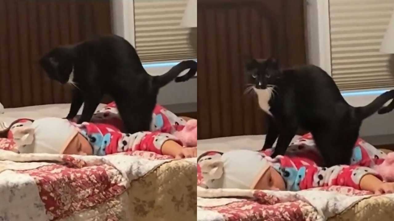একরত্তির পিঠে ম্যাসাজ করে দিচ্ছে বিড়াল, দেখুন সেই ভিডিয়ো