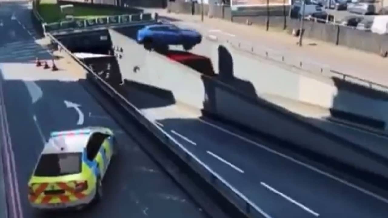 ভাইরাল হওয়া ভিডিয়োয় দেখা যাচ্ছে, একটি গাড়ি খুব স্পিডে আসছে। আর সেই গাড়িটিকে আটকানোর জন্য় একটি পুলিশের গাড়ি দাঁড়িয়ে আছে। কিন্তু কোনওভাবেই যাতে পুলিশ সেই গাড়িতে ধরতে না পারে, সেই জন্য় গাড়ির চালক সোজা একটি ক্যারেজওয়ে দিয়ে ওপারে যাওয়ার চেষ্টা করে। তাক ঠিক সময়ই নীচ থেকে একটি বাস যচ্ছিল। আর গাড়িটি সেই বাসের ছাদে ভর দিয়ে ওপারে চলে যায়। আশ্চর্যের বিষয় হল এত কিছুর পরও চালক এক্সিলারেটর থেকে পা সরাচ্ছেন না। ফলে গাড়িটি ধাক্কা খেয়ে অন্য দিকের ক্যারেজওয়েতে ঝাঁপিয়ে পড়ে। তারপরে ওভাবেই স্পিডে সেখান থেকে চলে যায়। পুরো দৃশ্য়টাই কোনও সিনেমার স্টান্টের থেকে কম কিছু না।