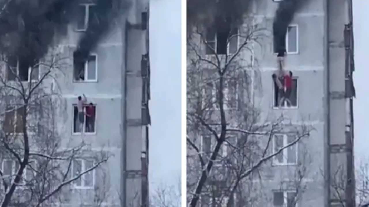শেষ পর্যন্ত সফলও হয়েছেন তাঁরা। তরুণীকে উদ্ধার করতে পেরেছেন ওই দুই যুবক। তাঁদের মধ্যে একজনই নীচের তলার জানলা থেকে ভর দিয়ে একটু উপরে উঠে ধীরে ধীরে নামিয়ে এনেছেন তরুণীকে। সেই সময়ে সাহায্য করেছেন আর এক যুবকও। প্রথমে হাত ধরে টেনে নামানোর পর কার্যত কোলে করেই তরুণীকে উপর থেকে নামানো হয়েছে। যথেষ্ট বিপজ্জনক এবং ঝুঁকিবহুল অবস্থায় তরুণীকে উদ্ধার করেছেন দুই যুবক। নিজেদের বিপদের কথা না ভেবে বরং তরুণীকে কীভাবে জ্বলন্ত ঘর থেকে উদ্ধার করা যায় সেদিকে নজর দিয়েছেন তাঁরা। আর তাই দুই যুবকের সাহসিকতা এবং মানবিকতার নজিরের প্রশংসায় পঞ্চমুখ হয়েছেন নেটিজ়েনরা। REN TV সূত্রে জানা গিয়েছে, গত ২৯ জানুয়ারি এই আগুন লেগেছিল রাশিয়ার রাজধানী মস্কোর Dorozhnaya স্ট্রিট এলাকায়। ওই বহুতলের দশতলায় আগুন লেগেছিল বলে জানা গিয়েছে। তবে আগুন বেশি ছড়িয়ে পড়ার আগেই দমকলবাহিনী ঘটনাস্থলে পৌঁছে আগুন নিয়ন্ত্রণে এনেছিল। তাই এ যাত্রায় বড়সড় কোনও ক্ষতি হয়নি।