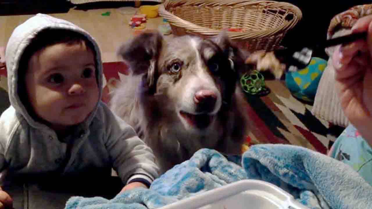 Mom & dad are trying to get their baby to say “mama” & “more”. Instead, they burst out laughing when their dog says it first. That’s one smart puppy!??⭐?⭐??