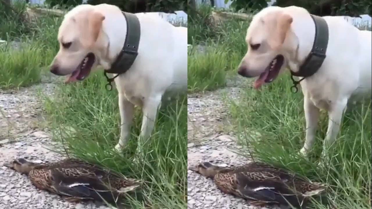 ভিডিয়োতে হাঁসের অনতিদূরেই দাঁড়িয়ে থাকতে দেখা যাচ্ছে কুকুরটিকে। দেখেই বোঝা যাচ্ছে যে, কুকুরটি সুযোগের অপেক্ষায় দাঁড়িয়ে রয়েছে। ওই হাঁস একবার উঠলেই তাকে আক্রমণ করবে সে। এদিকে হাঁসটিও যে চরম চালাক! ঘাপটি মেরে পড়ে রয়েছে সে। কুকুরটি এর মধ্যে অনুধাবন করে ওঠে যে, হাঁসের প্রাণ সংশয় রয়েছে। আর তখনই সে চলে যায়। আর যেই না চলে যায় কুকুরটি, সঙ্গে সঙ্গে সেই হাঁস আবার উঠে গটগট করে হেঁটে চলে যায়।
