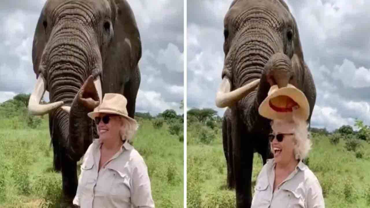 This elephant pretends to eat a woman’s hat… but then gives it back ??