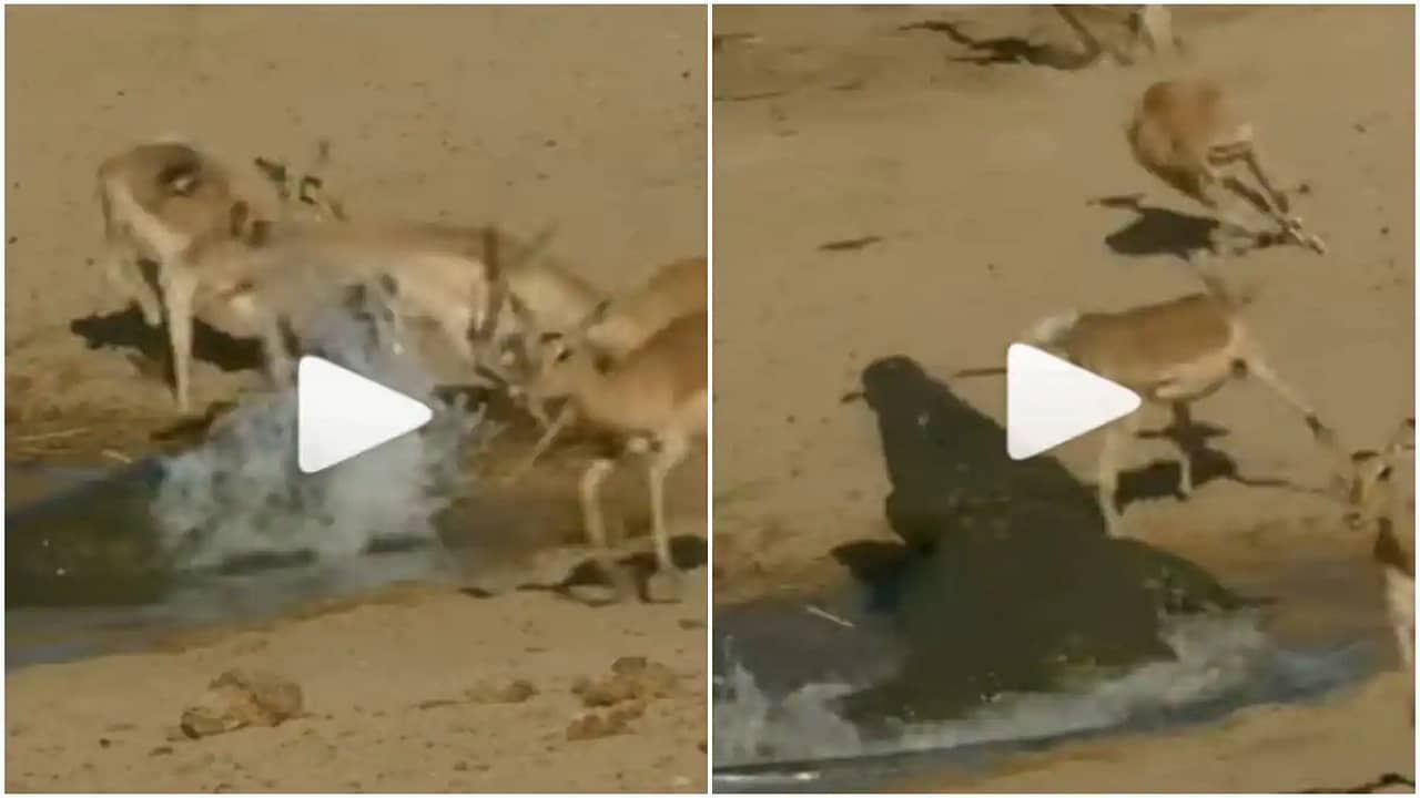 ভিডিয়োটা শুরুই হচ্ছে একপাল হরিণকে দিয়ে। নদীর তীরে তৃষ্ণার্ত সেই হরিণের দল জল খেতে আসে। শুরুর দিকে দেখে বোঝাই যাবে না যে, নদীর তীরের ওই ছোট্ট অংশে কোনও একটা বড় কুমির লুকিয়ে থাকতে পারে। ঠিক যেমনটা মনে হয়েছিল ওই হরিণগুলোরও। কিন্তু সেই ভাবনাই শেষমেশ ভুল বলে প্রমাণিত হল।