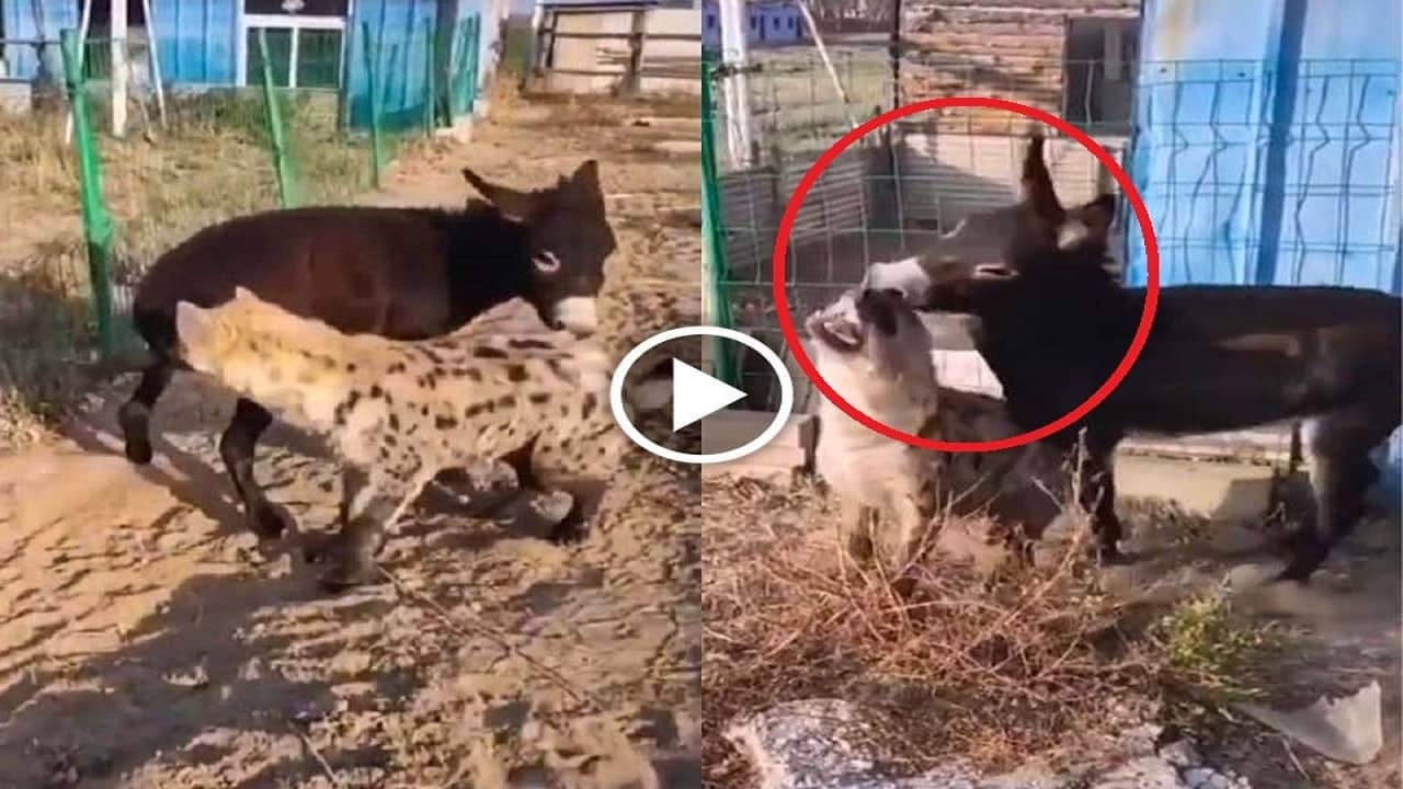 একপ্রকার সেয়ানে সেয়ানে টক্কর চলতে থাকে ওই গাধা ও হায়নার মধ্যে। হায়নাটি এতটাই আক্রমণাত্মক ভাবে চড়াও হয়, যে একপ্রকার থতমত খেয়ে যায় ওই গাধাটি। এরপরই বুদ্ধি করে ওই গাধাটি দাঁত দিয়ে চেপে ধরে হায়নার কান। আর তাতেই হায়নাটি ব্যাথায় চিল-চিৎকার করতে থাকে। গাধার এরকম কঠিন আক্রমণ থেকে মুক্তি পেতে প্রবল চেষ্টা করে যায় ওই হায়না। কিন্তু তাতে আখেরে কাজের কাজ কিসসু হয় না। হায়নাটি যতই চিৎকার করতে থাকে, ততই রেগে যায় গাধাটি এবং তত জোরে হায়নার কান চেপে ধরে সে।