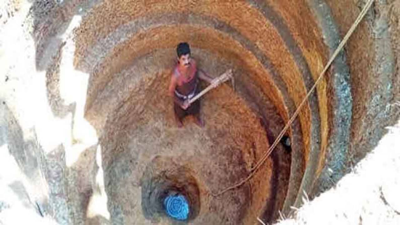 A young man single handedly digs a well , including lifting the soil and dumping it on the side somewhere in Kerala . Ingenuity at it's best. Video : From friends. #groundwater pic.twitter.com/TU8EiTR6ag