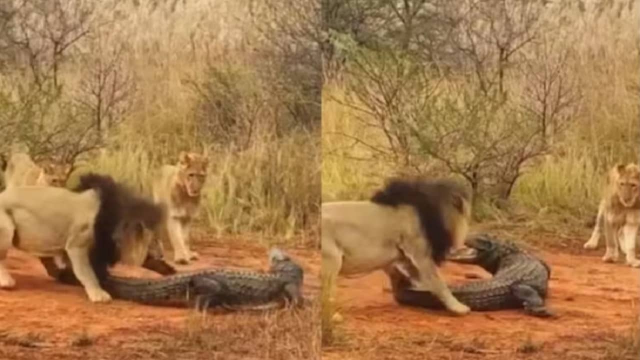 ইনস্টাগ্রামে এই ভিডিয়োটি পোস্ট করা হয়েছে। ক্যাপশনে লেখা হয়েছে, “ডাঙায় হাঁটতে থাকা এক কুমিরকে যখন সিংহরা আক্রমণ করে।” ভিডিয়োতে দেখা গিয়েছে, একটি কুমির জলাশয়ে আসার সময় কয়েকজন সিংহ এবং সিংহী মিলে তাকে ছেঁকে ধরে। কিন্তু কুমিরটি তাতে এক ফোঁটাও ভয় পায়নি। যতই তাকে সিংহ-সিংহীরা উত্যক্ত করার চেষ্টা করে, ততই সে জলাশয়ের দিকে গুটি-গুটি পায়ে এগিয়ে যেতে থাকে। সেই সিংহের দলও নাছোড়বান্দা। কিছুতেই তাকে ছাড়ছে না। কখনও তার লেজ ধরে, কখনও আবার কুমিরটার পা ধরে টানতে থাকে সিংহ-সিংহীরা।