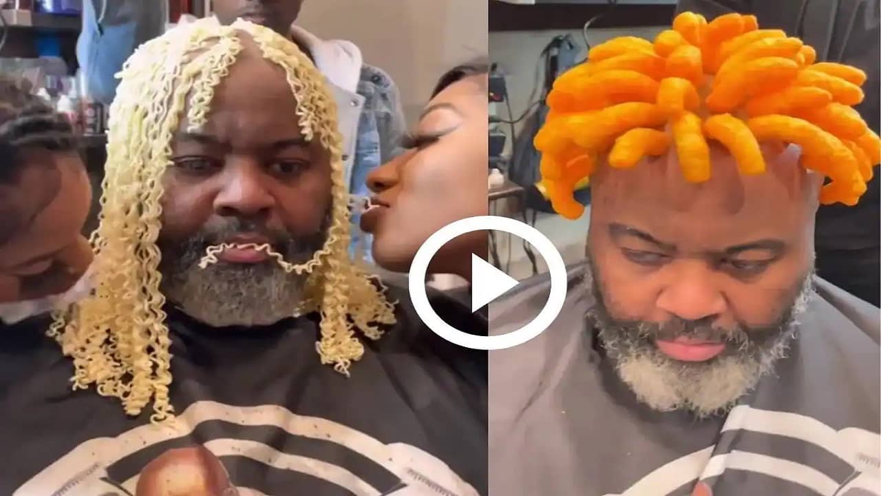 চুলের স্টাইল (Hair Style) কি আবার জিহ্বায় জল আনে নাকি? কখনওই না। কিন্তু এক ব্যক্তি, যা করে দেখালেন তাতে যে কেউ অবাক হবেন! বিএমআর টুইনস নামে একটি ইনস্টাগ্রাম অ্যাকাউন্ট থেকে বিভিন্ন মানুষের হেয়ার স্টাইলের ভিডিয়ো শেয়ার করা হয়েছে। আর তাঁদের মধ্যে নজর কেড়েছেন একজন। বিভিন্ন খাবারের হেয়ার স্টাইল করে থাকেন তিনি। কখনও ন্যুডলস, কখনও চিটোস, কখনও বা অন্য কোনও খাবার। ভাইরাল হওয়া ভিডিওগুলিতে (Viral Video) প্রধানত পল জোন্স নামে একজন ব্যক্তিকে দেখা যাচ্ছে, যিনি নিজেও একজন নাপিত। বিভিন্ন খাবারে চুলের স্টাইল করতে অত্যনত পারদর্শী তিনি। নিজেও চুল কাটেন সেই ভাবে।