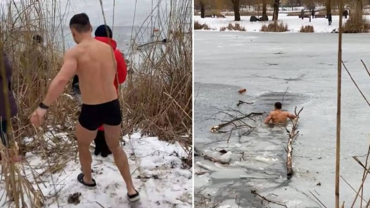 ভিডিয়োতে দেখা গিয়েছে যে, ওই বরফাবৃত লেকের ইতিউতি ছড়িয়ে রয়েছে কিছু কাঁটা গাছের ডাল। কুকুরটিকে উদ্ধার করতে যুবকটি সেই সব ডালপালা সরিয়েই এগিয়ে গেলেন। হিমায়িত বরফ জলের মধ্যে দিয়ে তিনি যাওয়ার সঙ্গে সঙ্গে বরফ ভাঙতে থাকে। তারপরই নজরে আসে একটি কালো কুকুর। বরফ জলে আটকে সে চিৎকার করছে। যুবকটি তার কাছে পৌঁছে কলো করে নিয়ে আসে।