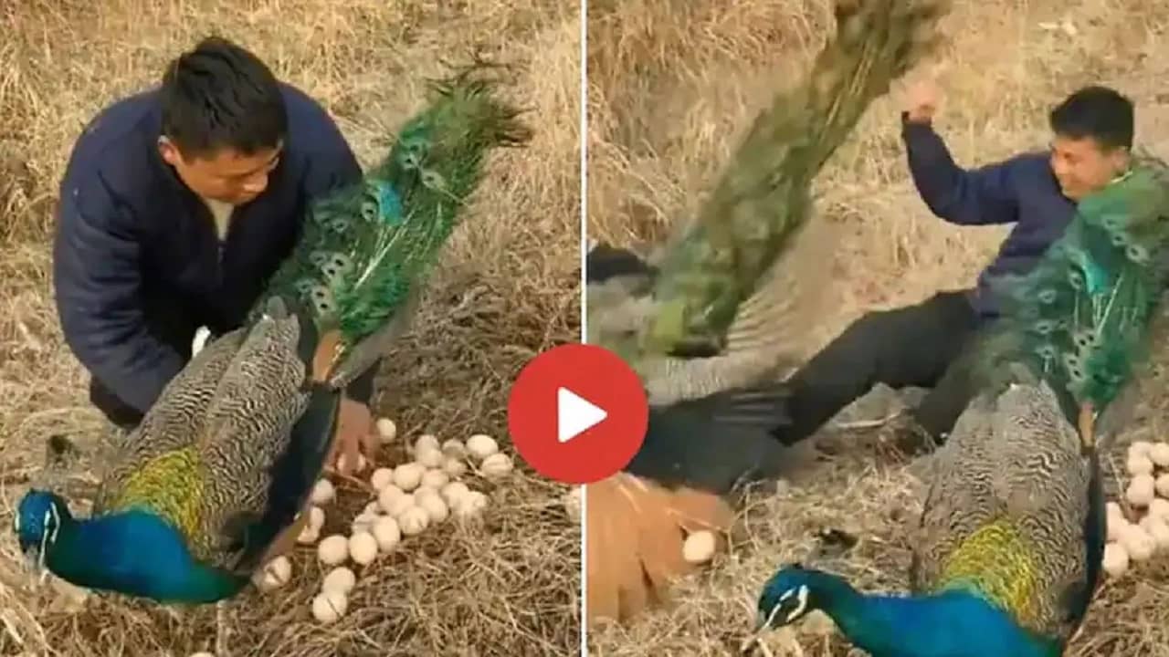 পশুপাখি বা পশুপাখির প্রতি যদি ভালোবাসার আচরণ করা হয়, তাহলে তারাও অমায়িক ভালবাসায় মানুষের সঙ্গে থাকে। কিন্তু কেউ তাদের উত্যক্ত করলে তারাও প্রতিশোধ নিতে জানে। সোশ্যাল মিডিয়ার অনেক ভিডিয়োতে আমরা এমন ঝলক দেখেছি। এমনই একটি ভিডিয়ো আবারও প্রকাশ্যে এসেছে। ভিডিয়োতে দেখা গিয়েছে একটি ময়ূরকে (Peacock) চলাফেরা করতে। আর তার কিছুক্ষণ পরই সেখানে এক ব্যক্তি এসে ওই ময়ূরের ডিম (Eggs) তুলতে থাকে। যেই লোকটি ডিম তুলতে গেলেন সঙ্গে সঙ্গে উল্টো দিক থেকে আর একটি ময়ূর উড়ে এসে তাঁকে আক্রমণ করে। ময়ূরের আকস্মিক আক্রমণে ব্যক্তিটি সেখানেই পড়ে যায়। ব্যাপক ভাইরাল হয়েছে এই ভিডিয়ো (Viral Video)।