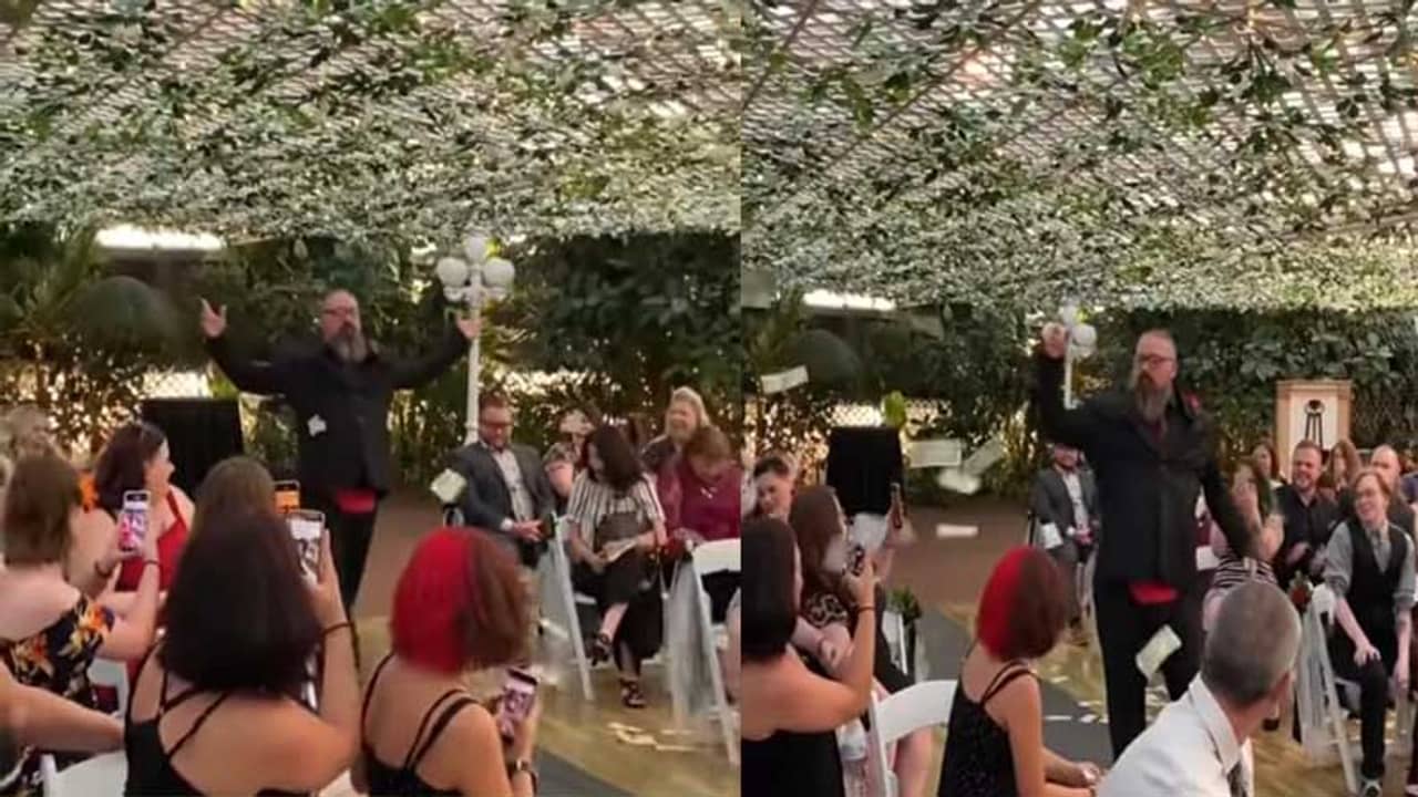 পাশ্চাত্যের বিয়ের ক্ষেত্রে একটা ছবি প্রায় সর্বত্রই দেখা যায়। সাদা ওয়েডিং গাউন পরে এগিয়ে আসছেন ব্রাইড অর্থাৎ কনে। সঙ্গে তাঁর ব্রাইডমেটসরাও রয়েছে। আর রয়েছে একদম বাচ্চা মেয়ে। যাঁদের হাতে থাকে ফুল। ব্রাইড যখন হেঁটে যান, তখন আশপাশে থাকা আগত অতিথিদের উপর ফুল ছড়িয়ে দেয় ওই বাচ্চারা। তবে সম্প্রতি এক বিয়ের অনুষ্ঠানে দেখা গিয়েছে একদম অন্য দৃশ্য। আর তাই নিয়েই হইচই শুরু হয়েছে নেট মাধ্যমে।