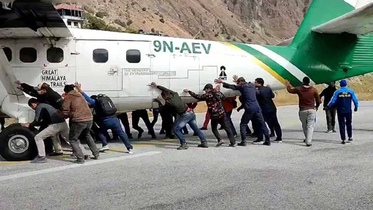 দেখা যাচ্ছে প্রায় ২০ জনের একটি দল বিমানটিকে ঠেলে নিয়ে যাচ্ছে রানওয়ে থেকে। এরপর এক ব্যক্তি সেই ভিডিয়ো শেয়ার করেন ট্যুইটারে। বিমানটি ছিল ইয়োতি এয়ারলাইন্সের। ইয়োতি এয়ারলাইন্সের মুখপাত্র সুরেন্দ্র বরতৌল জানান, এয়ার 9N-AVE বিমানটি হুমলার সিমকোট থেকে বাজুরা বিমানবন্দরে অবতরণ করেছিল। তখনই, এই বিমানের টায়ার ফেটে যায় আচমকা। অন্য একটি বিমান তখন রানওয়েতে নামার জন্য তৈরি হচ্ছিল। কিন্তু এই ঘটনার জেরে সেই বিমানটিও অবতরণ করতে পারেনি। ।