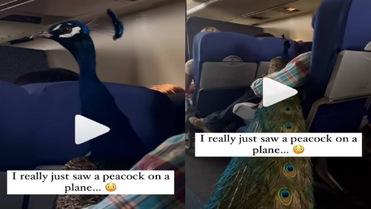 ভিডিয়োটা শুরু হতেই দেখা যাচ্ছে, একটি ময়ূরকে কোলে করে নিয়ে প্লেনে বসলেন এক মহিলা। ফ্লাইটের সিটে ওই ময়ূরটি বসে পড়লেও তার পাখা ছড়িয়ে পড়ল সিটের অন্যত্র। ঘাড় ঘুরিয়ে ঘুরিয়ে এদিক ওদিক তাকাতেও দেখা গিয়েছে ময়ূরটিকে। সে যেন অবাক! কোথায় এসে পৌঁছল।