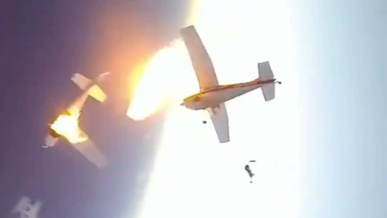 ভিডিয়োটিতে দেখা যায় যে, সংঘর্ষের ফলে ওই দুটি বিমানে ভয়ঙ্কর ভাবে আগুন লেগে যায়। বিমানটি মাঝ আকাশে ভেঙে যায়, কিন্তু ভাগ্যক্রমে এই বিমানে ছিলেন স্কাইডাইভাররা, যাঁরা শেষ অবধি নিরাপদে প্যারাশ্যুট খুলতে সক্ষম হয়েছিলেন এবং যার ফলে কেউ আহত হননি। এই ঘটনার প্রায় আট বছর পরে আবার ভিডিয়োটি ভাইরাল হল সোশ্যাল মিডিয়ায়।