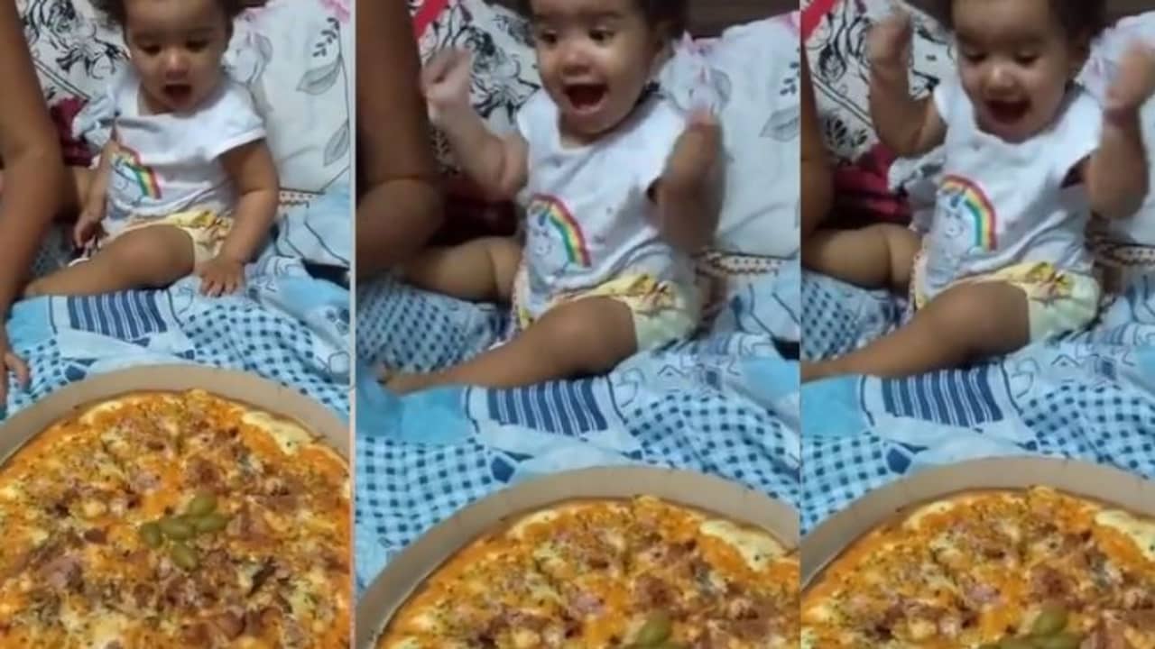 কী দেখা যাচ্ছে সেই ভিডিয়োতে? ভিডিয়ো বলছে খাবারে ঢাকনা খুলতেই প্রথমে অবাক চোখে তাকায় সে। এর পর পাশে বসা পরিবারের বড় কাউকে চট করে দেখে নেয়। তারপরেই ক্লাইম্যাক্স। দুই হাত উপরে তুলে জয় করার ভঙ্গিমায় হাসতে শুরু করে সে। না, টান মেরে খেয়ে নেওয়া নয়, পিৎজাকে দূর থেকে দেখেই খুশি সে। যিনি ভিডিয়োটি করছিলেন আবেগ ধরে রাখরে পারেননি তিনিও। খিলখিল করে হেসে ওঠেন তিনিও।