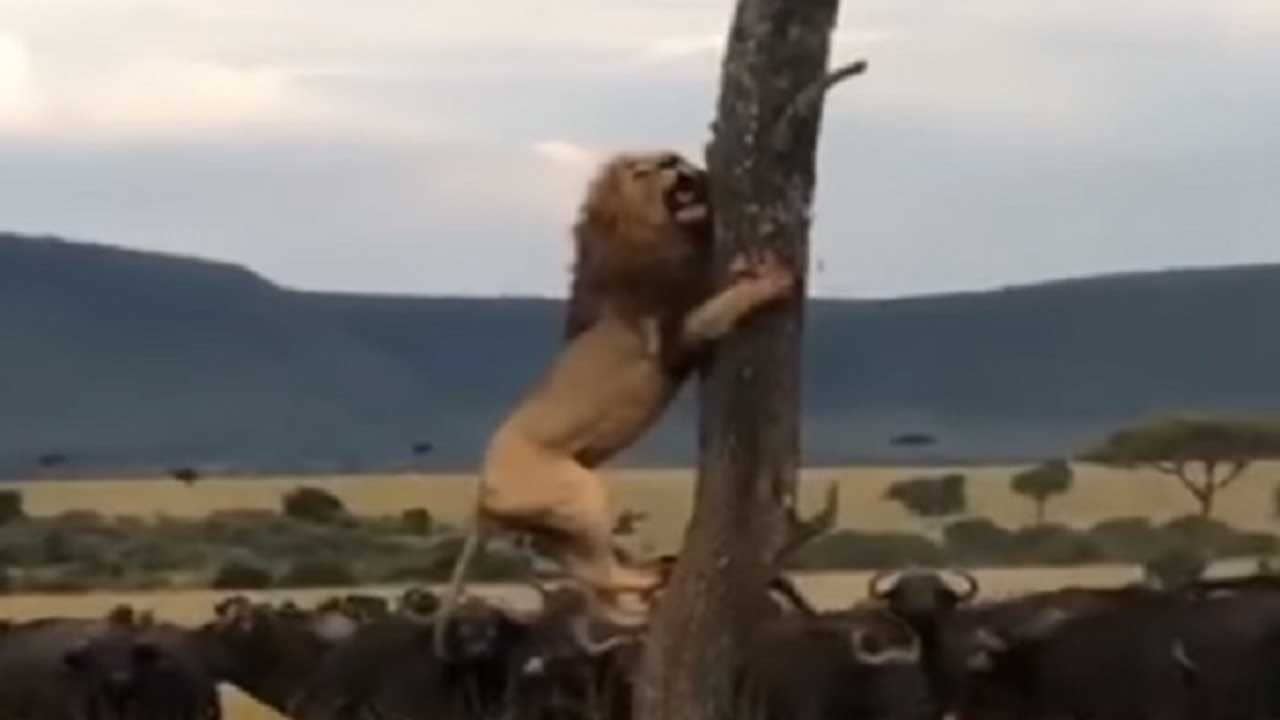 সাধারণত পশুরাজ সিংহের বীরবিক্রম সম্পর্কে সকলেই অবগত। জঙ্গলের রাজাকে ভয় পায় সকলেই। কিন্তু সেই আফ্রিকান সিংহকেই এভাবে মহিষের দলের ভয়ে একটি আকাসিয়া গাছে চড়তে দেখে মজা পেয়েছেন সকলেই। নেটিজ়েনদের অনেকেই বলেছেন, শেষ পর্যন্ত মহিষের দলের কাছে নতি স্বীকার করতে হয়েছে এই সিংহকে। মহিষের দলের তর্জন গর্জন দেখে বেচারা একদম গাছে চড়ে বসেছে সিংহটি। যেন মনে হচ্ছে কোনওরকমে পালিয়ে বেঁচেছে সে। গাছে চড়ে রীতিমতো হাঁপাতে দেখা গিয়েছে সিংহটিকে। আর নীচ থেকে তার দিকে তাকিয়ে রয়েছে মহিষের দল। সিংহ আর মহিষের দলের মধ্যে দূরত্ব রয়েছে ঠিকই। কিন্তু ওই মহিষের দলকে দেখে সিংহের প্রায় যায় যায় অবস্থা।