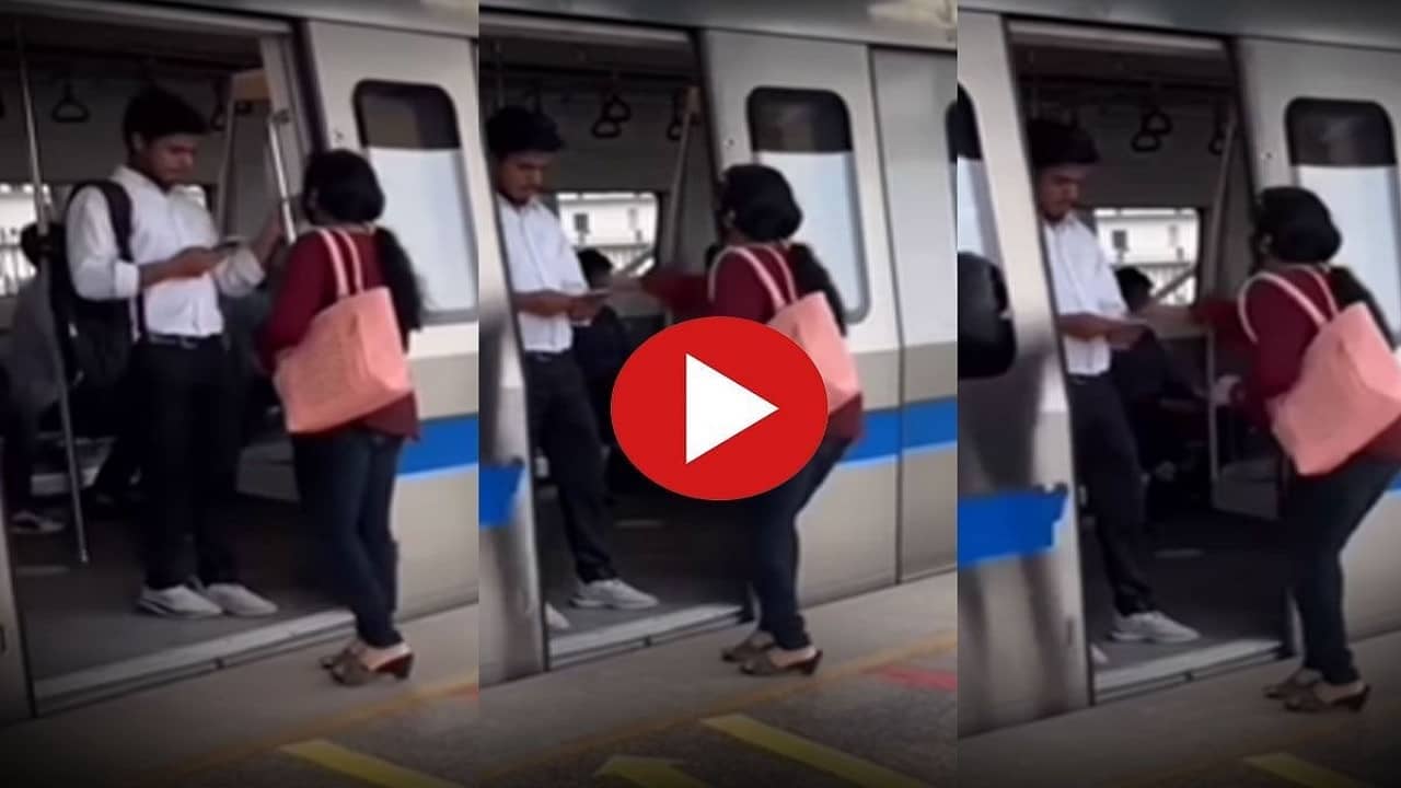 সম্প্রতি এই ভিডিয়োটি খুব ভাইরাল হয়েছে। জানা গিয়েছে, ঘটনাটি দিল্লি মেট্রোর। ঠিক কী ঘটল? দেখা গেল, স্টেশনে সবেমাত্র ট্রেনটি এসে দাঁড়িয়েছে। এক এক করে যাত্রীরা ট্রেনে উঠছেন। কিন্তু এক মহিলাকে দেখা গেল তিনি ট্রেনে না উঠে দাঁড়িয়ে থাকলেন মেট্রোর একটি দরজার সামনে। আর তাঁর সামনে দাঁড়িয়ে আর এক ব্যক্তি, যিনি তখন মোবাইলে খুটখুট করতে মগ্ন।