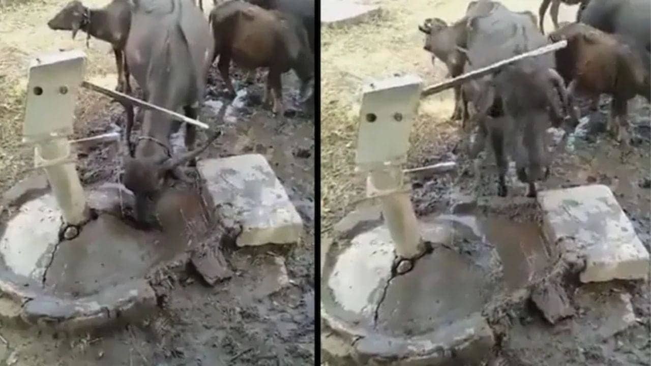 এই ভাইরাল হওয়া ভিডিয়োতে একটি হ্যান্ড পাম্পের চারপাশে এক পাল মহিষকে দাঁড়িয়ে থাকতে দেখা যায়। তাদের মধ্যে একজন জল পাম্প করার জন্য অদ্ভুত বুদ্ধির ব্যবহার করে। সে তার তৃষ্ণা মেটাতে তার একটা শিংকে ব্যবহার করেছে। বলাই বাহুল্য, ভিডিয়োটি সোশ্যাল মিডিয়ায় ভাইরাল হয়ে গেছে।