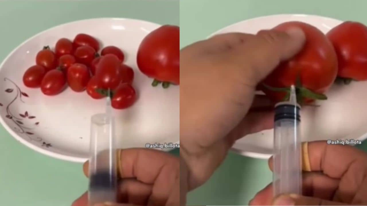 মাত্র কয়েক সেকেন্ডের ভিডিয়ো। ব্যাপক ভাইরাল হয়েছে তা। সেখানে দেখা গেল, একটা প্লেটে রাখা আছে ছোট্ট ছোট্ট কিছু টমেটো। যখনই সেই টমেটোগুলিতে ইঞ্জেকশন দিয়ে হাওয়া ভরা হচ্ছে, তখনই সেগুলি ফুলে গিয়ে বড় আকারের টমেটো হয়ে যাচ্ছে। অবাক কাণ্ড না? এমন কাণ্ড আগে কখনও দেখেছিলেন?