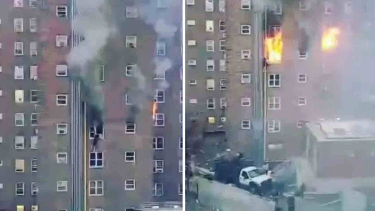 দাউদাউ করে জ্বলছে বহুতলের একটি ঘর। জানলা দিয়ে গলগল করে বেরোচ্ছে কালো ধোঁয়ার কুণ্ডলী। মাঝে মাঝে দেখা যাচ্ছে আগুনের লেলিহান শিখা। কিন্তু ও কী! এই ভয়ানক পরিস্থিতিতে ওই আগুন ধরে যাওয়া জানলায় দেখা গিয়েছে দু’জন মানুষকে! হাবভাব দেখে মনে হচ্ছে ওই ঘর থেকে বেরনোর চেষ্টা করছে তারা। নিউ ইয়র্কের ইস্ট ভিলেজের এই ভিডিয়ো দেখে আঁতকে উঠেছেন নেটিজ়েনরা। জানা গিয়েছে, এই ভাইরাল ভিডিয়োতে যে দু’জনকে দেখা গিয়েছে তাদের মধ্যে একজনের বয়স ১৩ বছর। অন্যজনের ১৮। জ্বলন্ত ঘর থেকে জানলা দিয়ে বেরনোর চেষ্টা করছিল তারা।