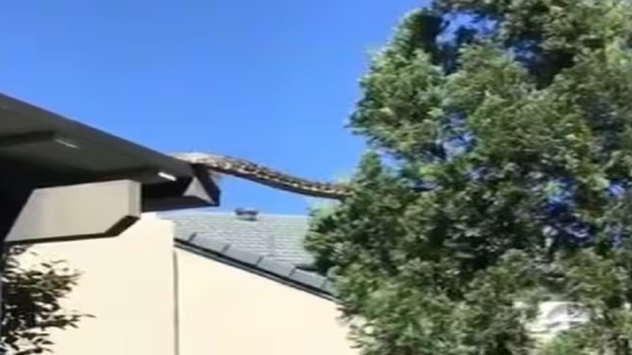 Viral Video: ঘরের চালে 16 ফুটের অজগর, চেহারায় অ্যানাকোন্ডার থেকে কোনও অংশে কম নয়!