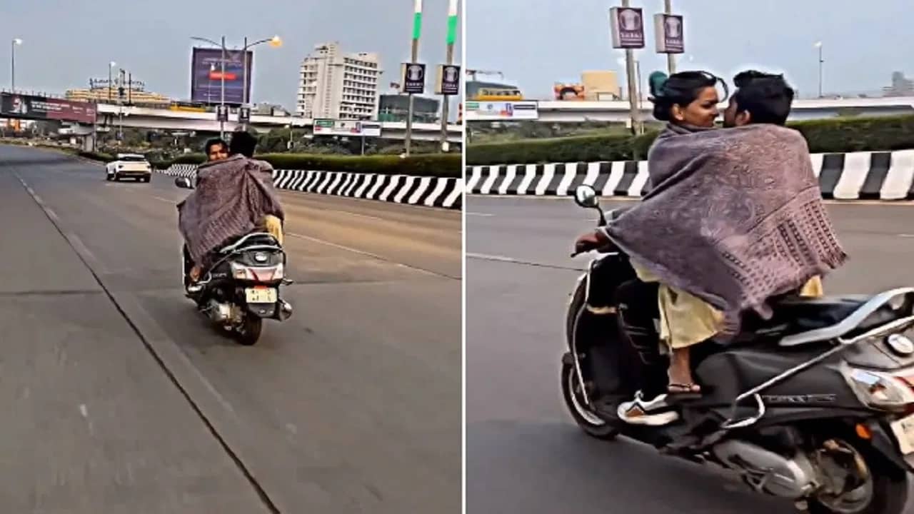 রাস্তা দিয়ে তুমুল বেগে চলছে একটি স্কুটার। কিন্তু এ কী! এক যুবক স্কুটার চালাচ্ছে। আর তার দিকে মুখ করে বসে রয়েছে এক যুবতী। দু’জনে একটিই চাদর জড়িয়ে। এমনই এক যুগলকে দেখা গেল মুম্বাইয়ের রাস্তায়। এতদিন মেট্রোর একের পর এক ভিডিয়ো সামনে আসছিল। মেট্রোতে রোম্যান্স করা যেন এখন সাধারণ ব্যাপার হয়ে উঠেছে। আর তারই অনেক ভিডিয়ো ভাইরাল হয় সোশ্যাল মিডিয়ায়। কিন্তু এবার এক দম্পতির ভিডিয়ো সোশ্যাল মিডিয়ায় ভাইরাল হচ্ছে, তা দেখে অধিকাংশ নেটিজেন ক্ষিপ্ত। ঠিক কী দেখা যাচ্ছে সোশ্যাল মিডিয়ায়?