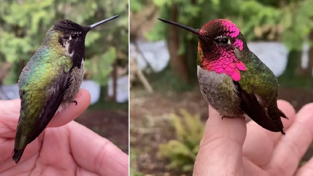 গিরগিটি যে ভাবে রং বদলাতে পারে, সে ভাবেই রং পরিবর্তন করতে পারে হামিংবার্ড, যা অনেকের কাছেই অজানা। ভাইরাল হগ নামক একটি ইউটিউব পেজ থেকে ভিডিয়োটি শেয়ার করা হয়েছে। পাখিটিকে বসানো হয়েছে একটি হাতের উপরে। কিউট হামিংবার্ডটিকে দেখা গেল, প্রতি সেকেন্ডে কখনও গাঢ় সবুজ, কখনও গোলাপি আবার কখনও কালো রঙের হয়ে যেতে।