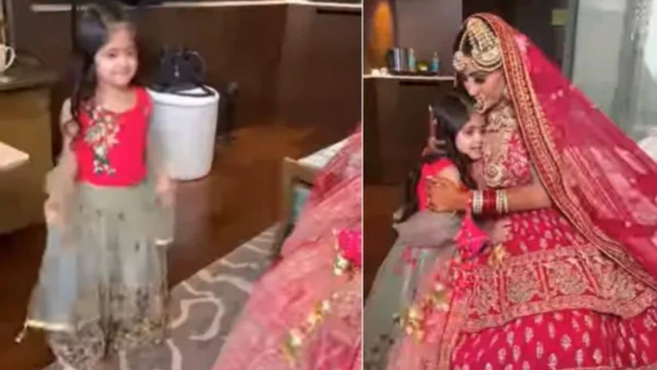 বিয়ের দিন নিজের মাকে কনের সাজে দেখে একটি ছোট্ট মেয়ের প্রতিক্রিয়ার ভিডিয়ো মন জয় করে নিল হাজার হাজার সোশ্যাল মিডিয়া ইউজারের। এই ভিডিয়ো পোস্ট করেছেন মেকআপ আর্টিস্ট গুনীত বীরদি। এতে মেকআপ আর্টিস্ট অঞ্জলি মানচন্দাকে তাঁর বিয়ের দিনে দেখানো হয়েছে।