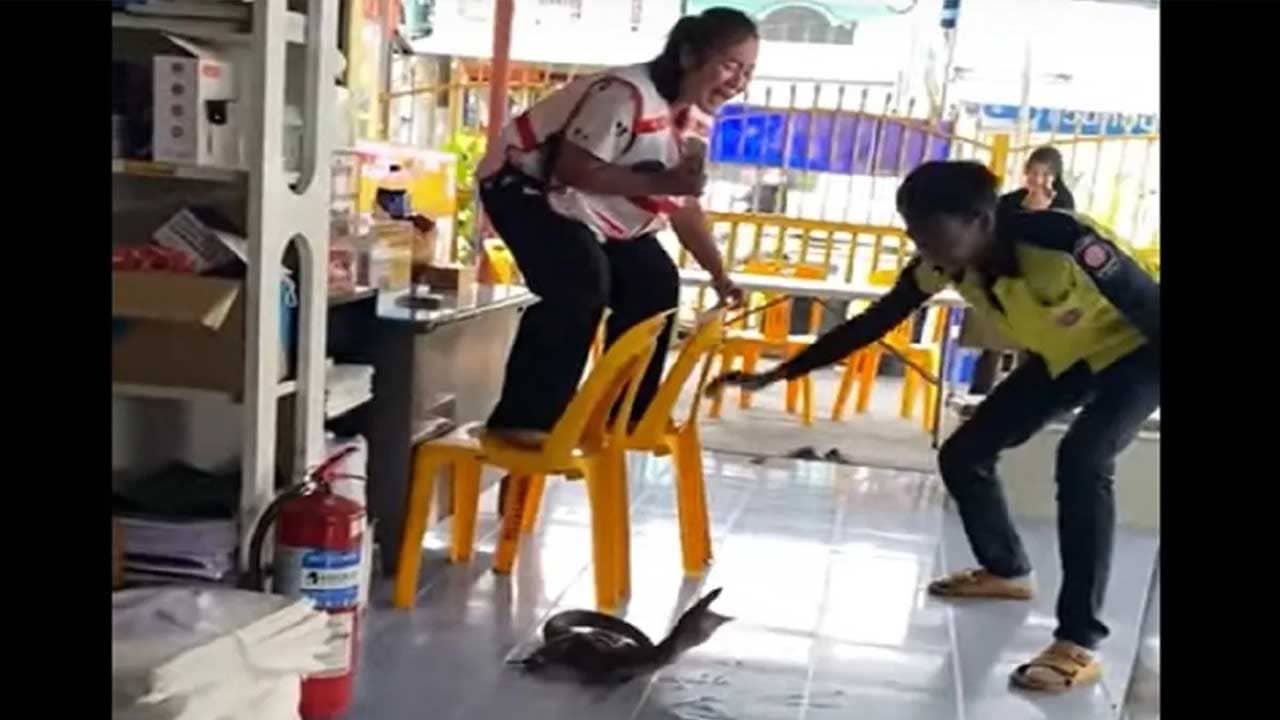 ভিডিয়ো দেখে বোঝা গিয়েছে, একটি রেস্তোরাঁয় ঢুকে পড়েছিল মনিটর লিজার্ডটি। তাকে দেখে সটান একটা চেয়ারের উপর উঠে দাঁড়িয়ে পড়েছেন এক মহিলা। সম্ভবত ওই রেস্তোরাঁরই কর্মী তিনি। চেয়ারে উঠেই প্রাণপনে চিৎকার করতে থাকেন তিনি। জানা গিয়েছে তাইল্যান্ডের একটি রেস্তোরাঁয় এই ঘটনা ঘটেছে। ওই মহিলা সেখানকার ভাষাতেই চিৎকার করে কিছু বলছিলেন। ভাষা বোঝা না গেলেও এটা স্পষ্ট ছিল যে ওই বিশালাকার টিকটিকিটিকে দেখে মারাত্মক ভয় পেয়েছেন তিনি। তাঁর করুণ দশা দেখে দোকানেরই আর একজন কর্মী মনিটর লিজার্ডটিকে তাড়ানোর চেষ্টা করেন। কিন্তু এত সহজে কী আর জায়গা ছেড়ে সে নড়ে। যতবার তাকে তাড়ানোর চেষ্টা করা হচ্ছিল ততবারই ওই কর্মীর দিকে তেড়ে যাচ্ছিল সে। শেষে ওই যুবকটি পায়ের জুতো খুলে মেরে ধরে বিশাল টিকটিকিটিকে বাগে আনার চেষ্টা করেন। তাতেও কাজ না হওয়ায় হাল ছেড়ে সরে যান।