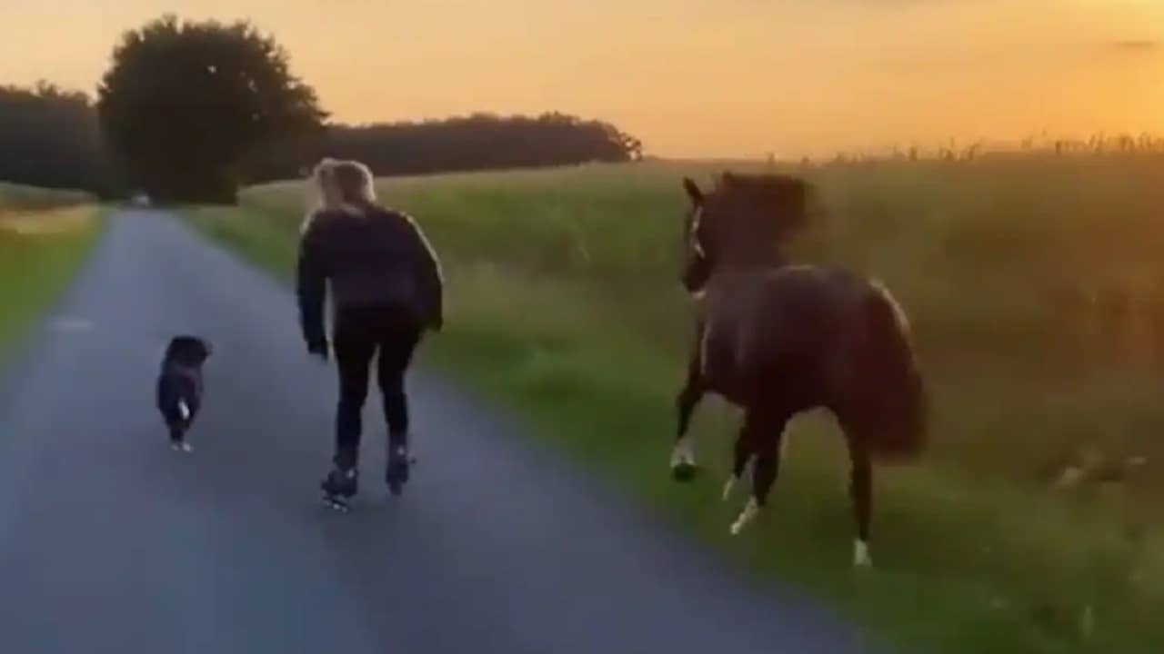 Latest Viral Video: সুখ কাকে বলে! অতিন্দ্রিয় সুখানুভূতির ভিডিয়ো শেয়ার করে দেখালেন এক মহিলা। সে এমনই এক ভিডিয়ো, যা আপনার ব্যস্ততম সোমবারের মন ভাল করে দেবে। এক মহিলাকে দেখা গেল স্কেট করতে। তাতে আর আলাদার কী আছে! স্কেট তো অনেকেই করেন। কিন্তু এই মহিলা একটি ঘোড়া এবং একটি কুকুরের মধ্যমণি হয়ে স্কেট করছিলেন। ভিডিয়োতে দেখা গেল, মাঝে তিনি। তাঁর এক পাশে কুকুরটি দৌড়ছে, আর এক পাশে দৌড়চ্ছে একটি ঘোড়া। তাহলে বলুন! অতিন্দ্রিয় সুখানুভূতি বলবেন না একে? তিন বন্ধুর বন্ডিংয়ের এমন একটা ভিডিয়ো দেখে আপনার স্পিরিটও কি একটু হাই হয়ে গেল না?