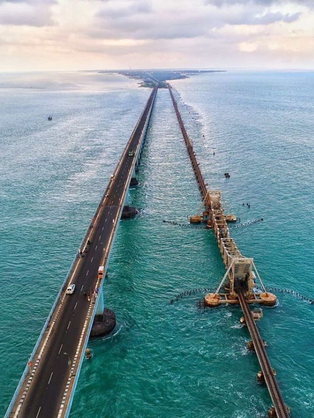 তামিলনাড়ুর পাম্বান ব্রিজ। বিখ্যাত এই ব্রিজকে রামেশ্বরম ব্রিজও বলা হয়।