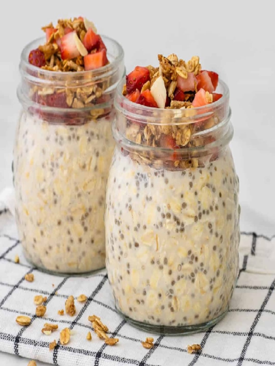 ওটস, পছন্দের ফল, দুধ, চিয়া সিডস,পিনাট বাটার একচামচ আর ইচ্ছে হলে এক চামচ মধু লেয়ার করে একটি জারে ভিজিয়ে ফ্রিজে রাখুন ৭ ঘন্টা। পরদিন সকালে তা বের করে খান। একবার খেলে বারবার খাবেন