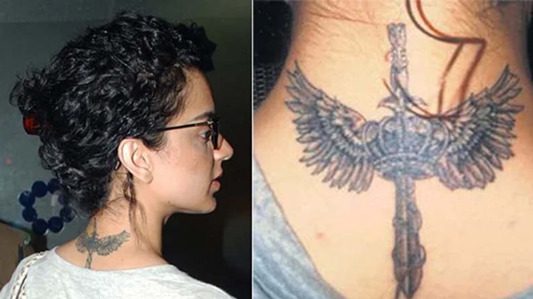কঙ্গনার পিঠে রয়েছে ডানাযুক্ত তরোয়াল এবং এক অ্যাঞ্জেলের ট্যাটু।