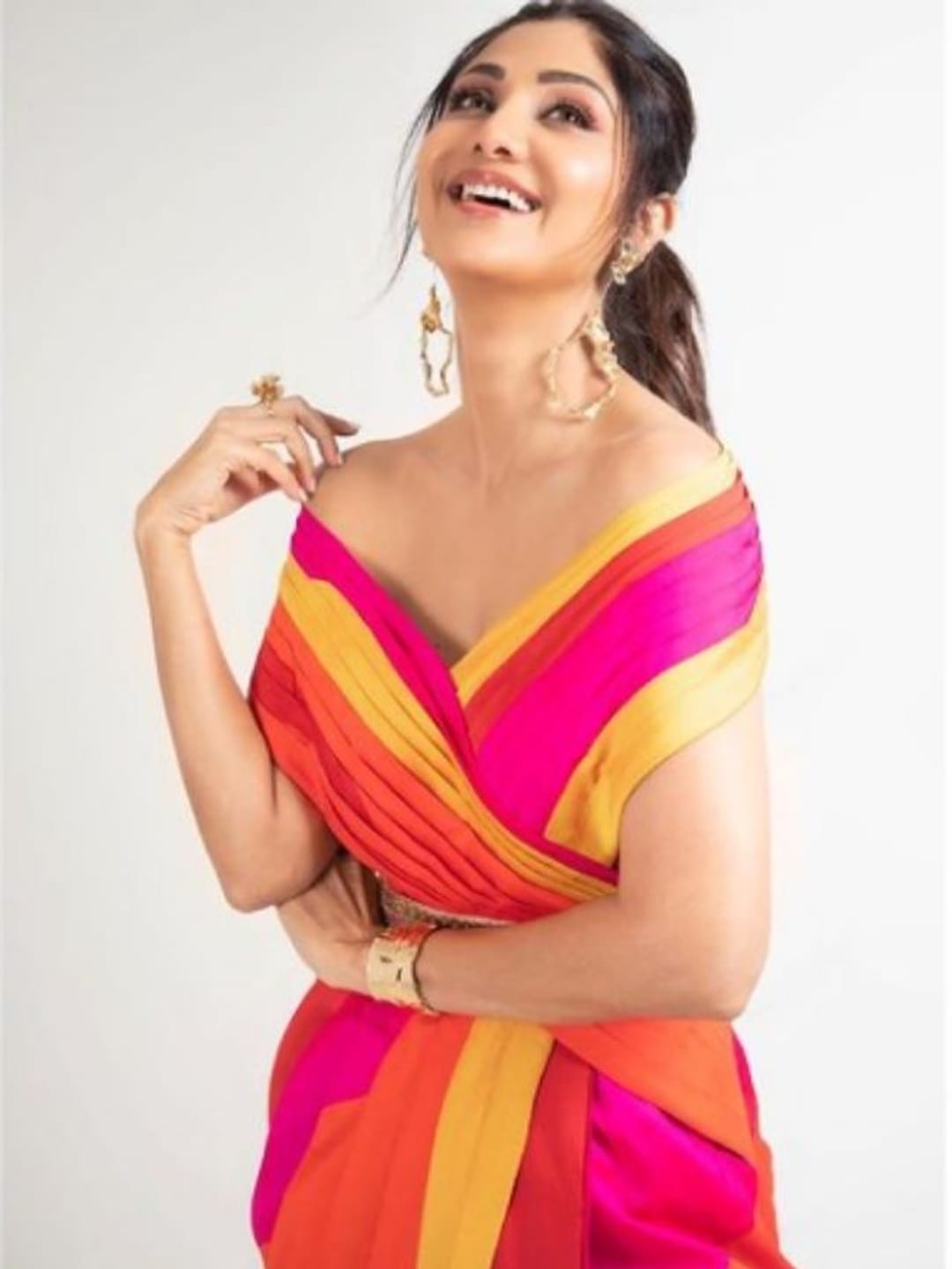 কালার ব্লক শাড়িতে শিল্পার সৌন্দর্য