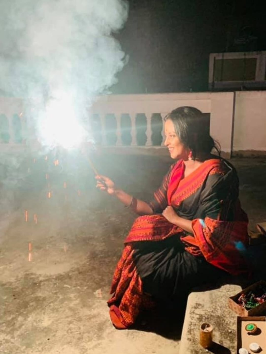 পুজোর দিন শাড়িতে নিজেকে মুড়ে বাজি ফাটালেন অভিনেত্রী
