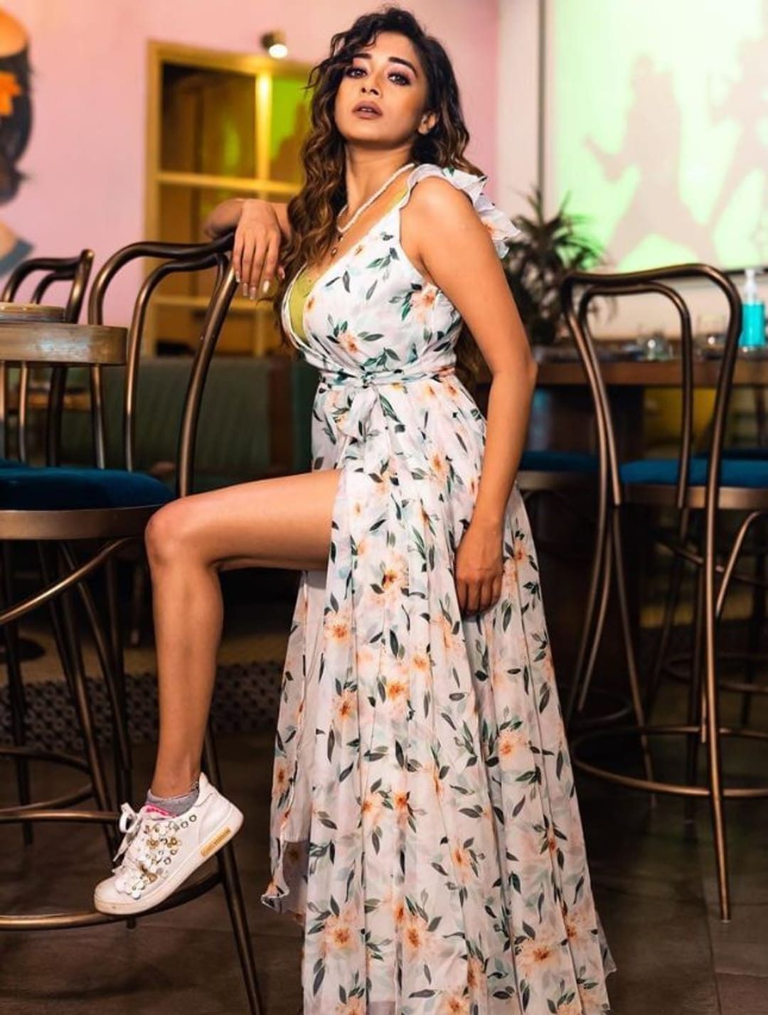 টিনাকে এই পা খোলা পোশাকে অসাধারণ সুন্দরী লাগছে