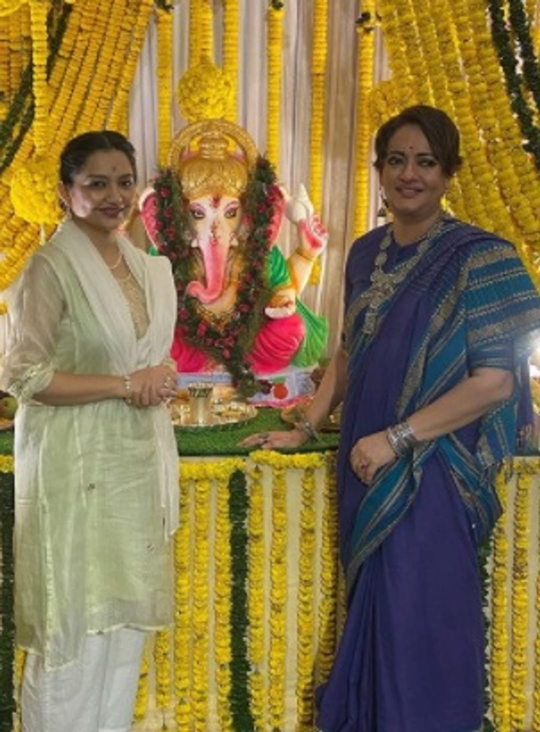 যিশু সেনগুপ্তর স্ত্রী ও অভিনেত্রী নীলাঞ্জনার সঙ্গে গণেশ আরাধনায় জুন মালিয়া