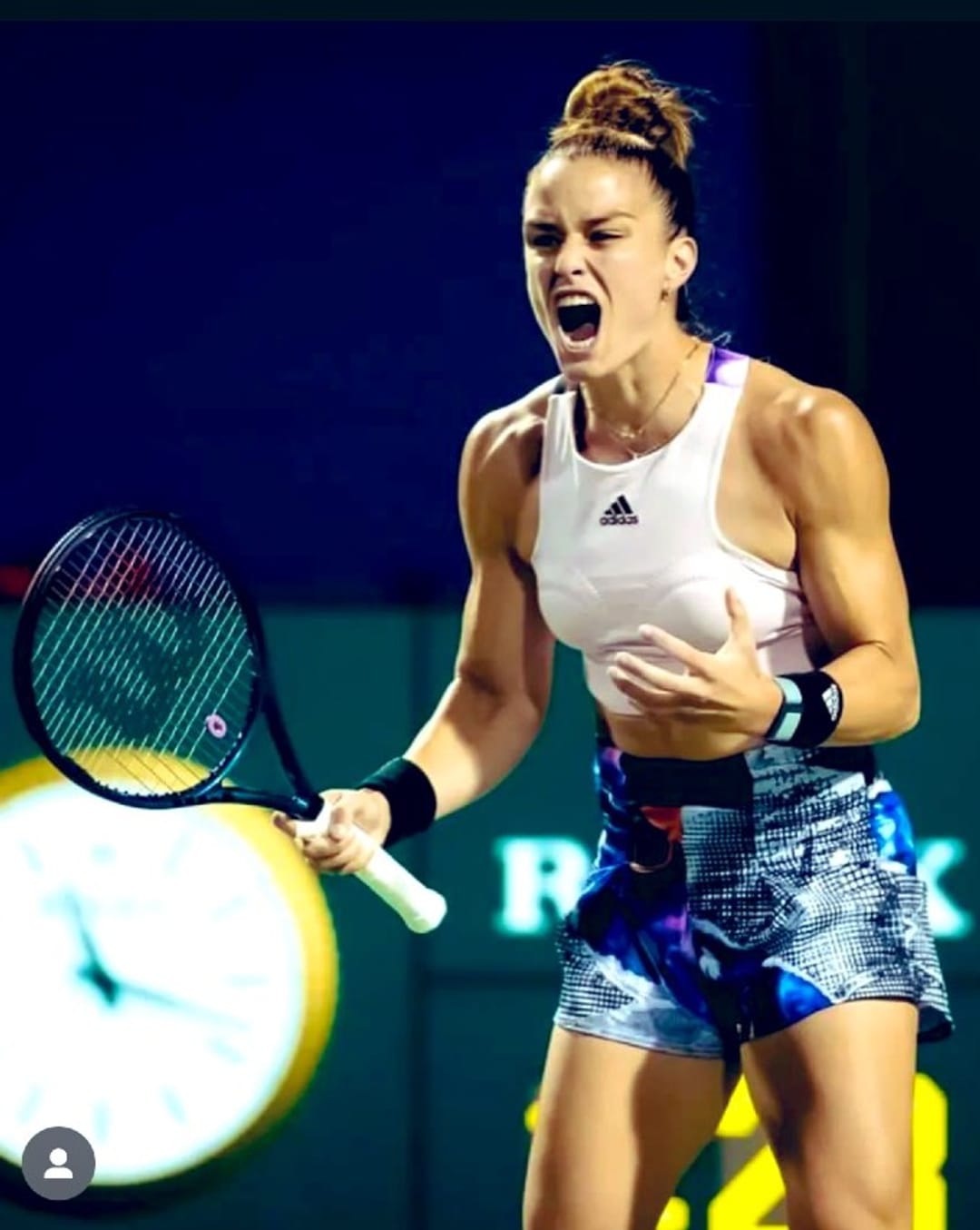 মাল্টিকালারের ক্রপ টপ ও কালো স্কার্ট। মারিয়া শাকারি এতেই নজর কাড়ছেন