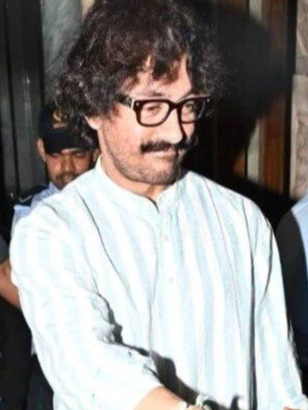 আমিরের এই লুকটিও সে রকমই ইঙ্গিত দিচ্ছে। সাদা-নীল স্ট্রাইপ ফুল হাতা শার্টে দেখা যায় তাঁকে। সঙ্গে মধ্যিখানে সিঁথি করা চুল। কালো ফ্রেমের চশমা এবং তান পাকানো গোঁফ।