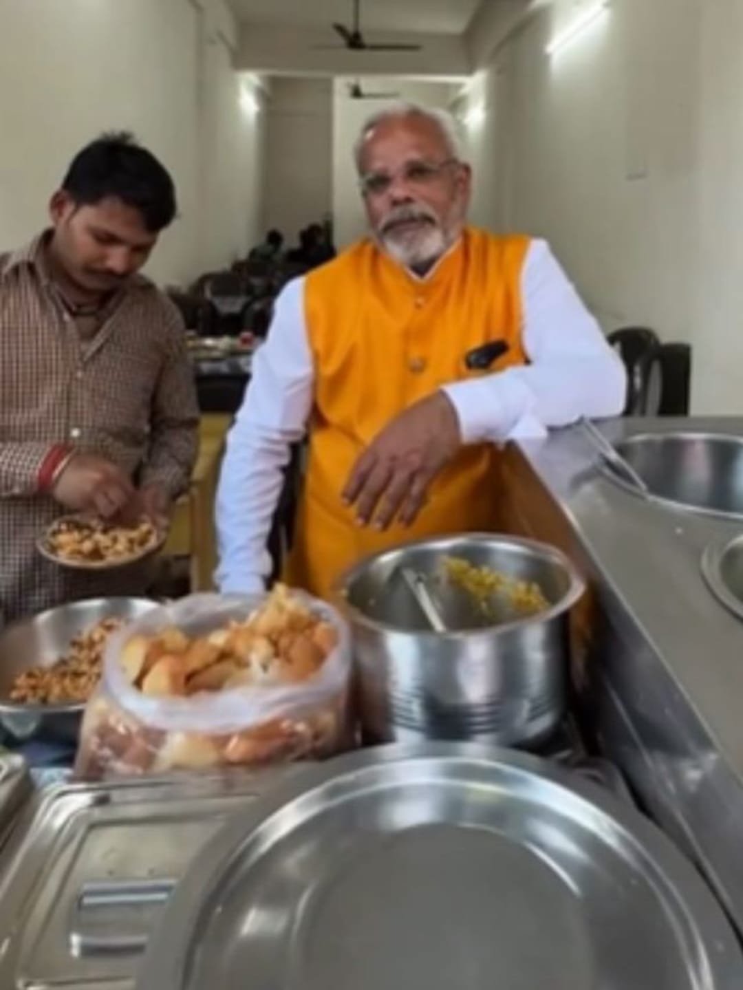 ছবি দেখে অবিশ্বাস্য মনে হলেও, ইনি আসল প্রধানমন্ত্রী নন। তাঁকে কেবল প্রধানমন্ত্রী মোদীর মতো দেখতে। ওই ফুচকা বিক্রেতার নাম অনীল ভাই ঠক্কর। গুজরাটের আনন্দে রয়েছে তাঁর দোকান 'তুলসী পানিপুরী'।