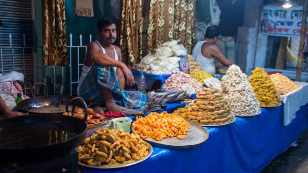 এবার ভাজা গজা চিনির রসে ডুবিয়ে নিলেই তৈরি কাঠিগজা