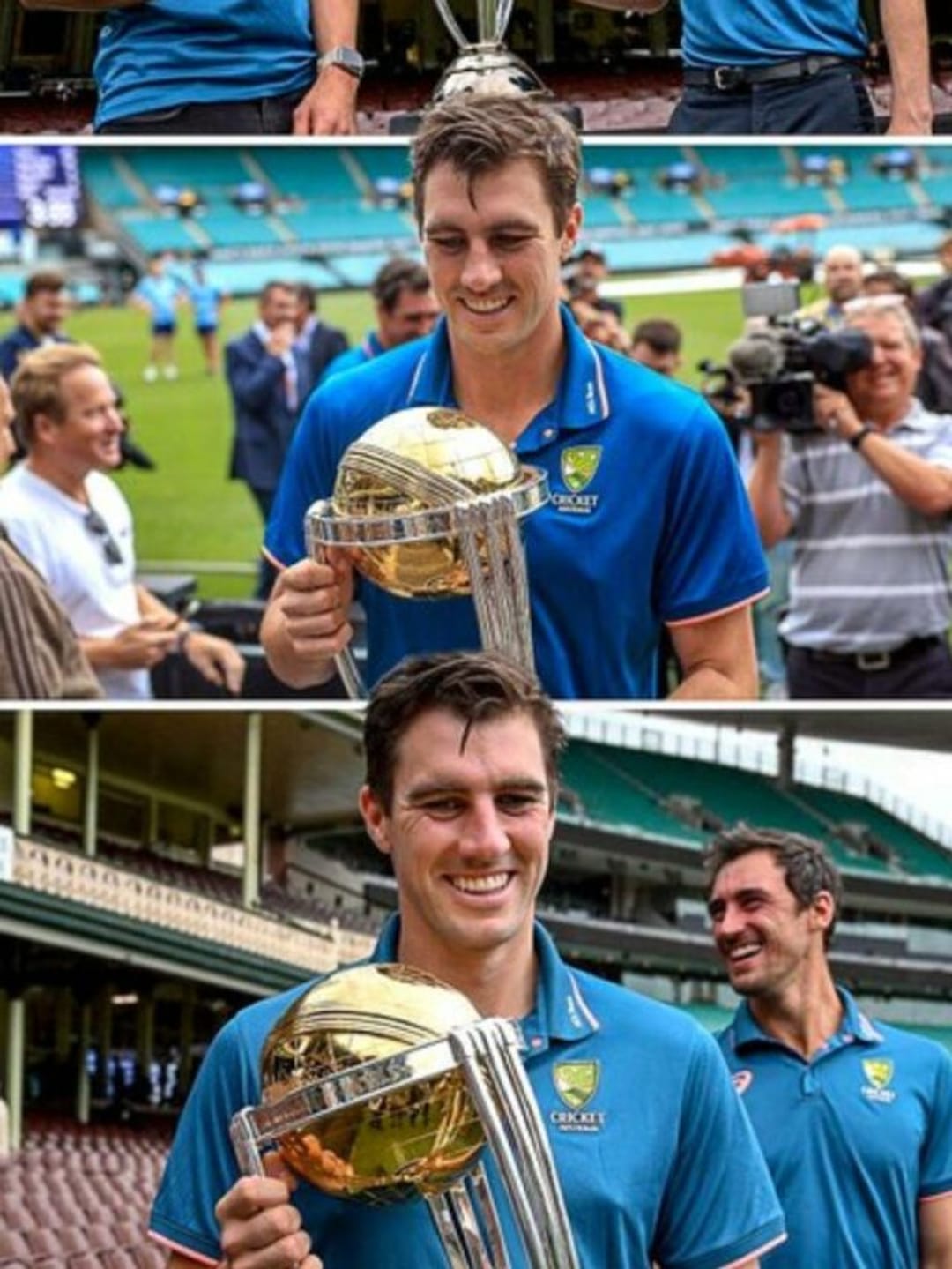 বিশ্বকাপ হাতে নিয়ে দুই তারকা দিলেন পোজ। এই জয়ের পিছনে রয়েছে অনেক কসরত। দুর্দান্ত ক্রিকেট খেলে এই ট্রফি জিতেছে অজিরা।