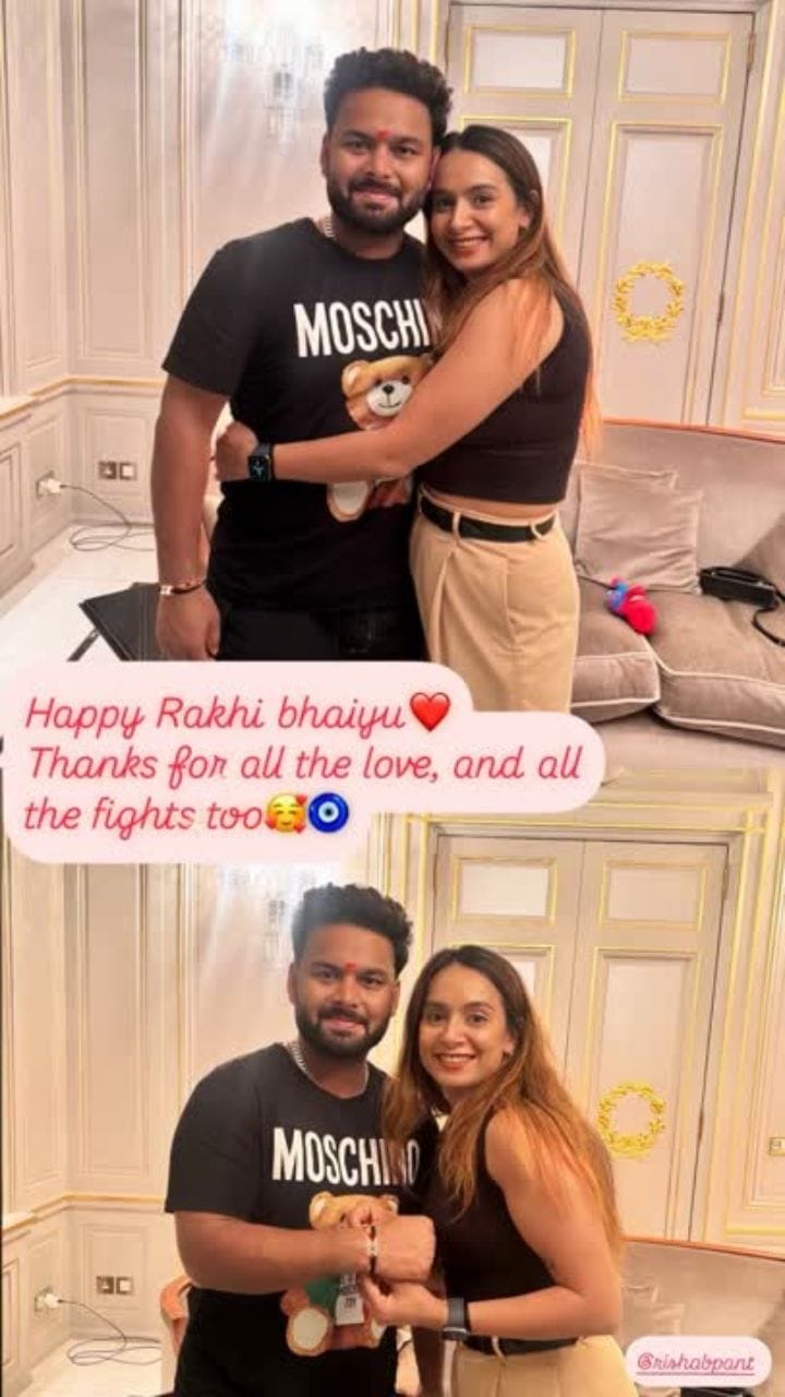 দেশের তারকা উইকেটকিপার-ব্যাটার ঋষভ পন্থকে রাখি পরিয়েছেন তাঁর বোন সাক্ষী পন্থ। সেই মিষ্টি ছবি ইন্সটা স্টোরিতে শেয়ার করেছেন সাক্ষী।