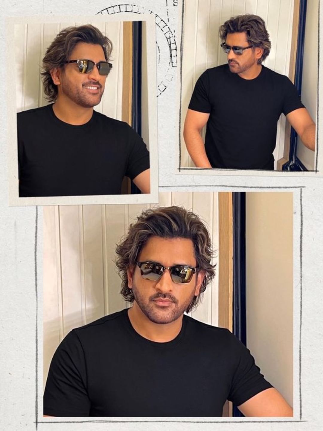 কালো ক্যাজুয়াল শার্ট, গোল্ডেন শেডের সানগ্লাস ও নতুন হেয়ারস্টাইলে নেটদুনিয়ায় ঝড় তুলে দিয়েছেন মহেন্দ্র সিং ধোনি।